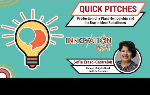 Meat substitutes are a large and growing sector of the food market. A recombinant plant hemoglobin that retains its color when exposed to light could be a valuable coloring ingredient for such products. This talk explores the commercial potential of this innovation, including how to produce it in large scale and how it holds up under processing, storage and display conditions. Sofia Erazo, a post doc working with Mark Richards, presents this technology at WARF Innovation Day.