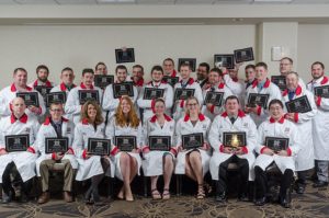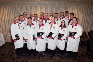 Middle Row of 11 (left to right): Dean Rindahl (Fox Bro’s Piggly Wiggly; Oconomowoc, WI), Joseph Parajecki (Kettle Range Meat Company; Waterford, WI), Shaun Edwards (Jones Dairy Farm; Fort Atkinson, WI), Justin Fugate (Sailer’s Food Market & Meat Processing; Elmwood, WI), Nathan Inboden (Inboden Meats; DeKalb, IL), Ashley Sutterfield (Tyson Foods; Springdale, AR), David Sutton (Newhall Meat Locker; Newhall, IA), Eric Muench (Louie’s Finer Meats; Cumberland, WI), Thomas Grantner (Peer Foods Group; Chicago, IL), Michael Jansen (Johnsonville Sausage; Sheboygan Falls, WI), Vance Lautsbaugh (Crescent Meats & Catering; Cadott, WI)