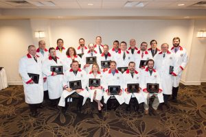 Front Row of 7 (left to right): Donald Aldrich (Ski’s Meat Market; Steven’s Point, WI), Desmond Johnston (SAIT Polytechnic; Calgary, Alberta), Patrick O’Connell (Peer Foods Group; Chicago, IL), Kelly Gall Washa (Grand Champion Meats; Foley, MN), Robert Gokey (Karl’s Sausage Kitchen; Peabody MA), Henry Vieluf (Cibao Meat Products; Bronx, NY), Timothy Brueggen (Falls Meat Service; Pigeon Falls, WI)